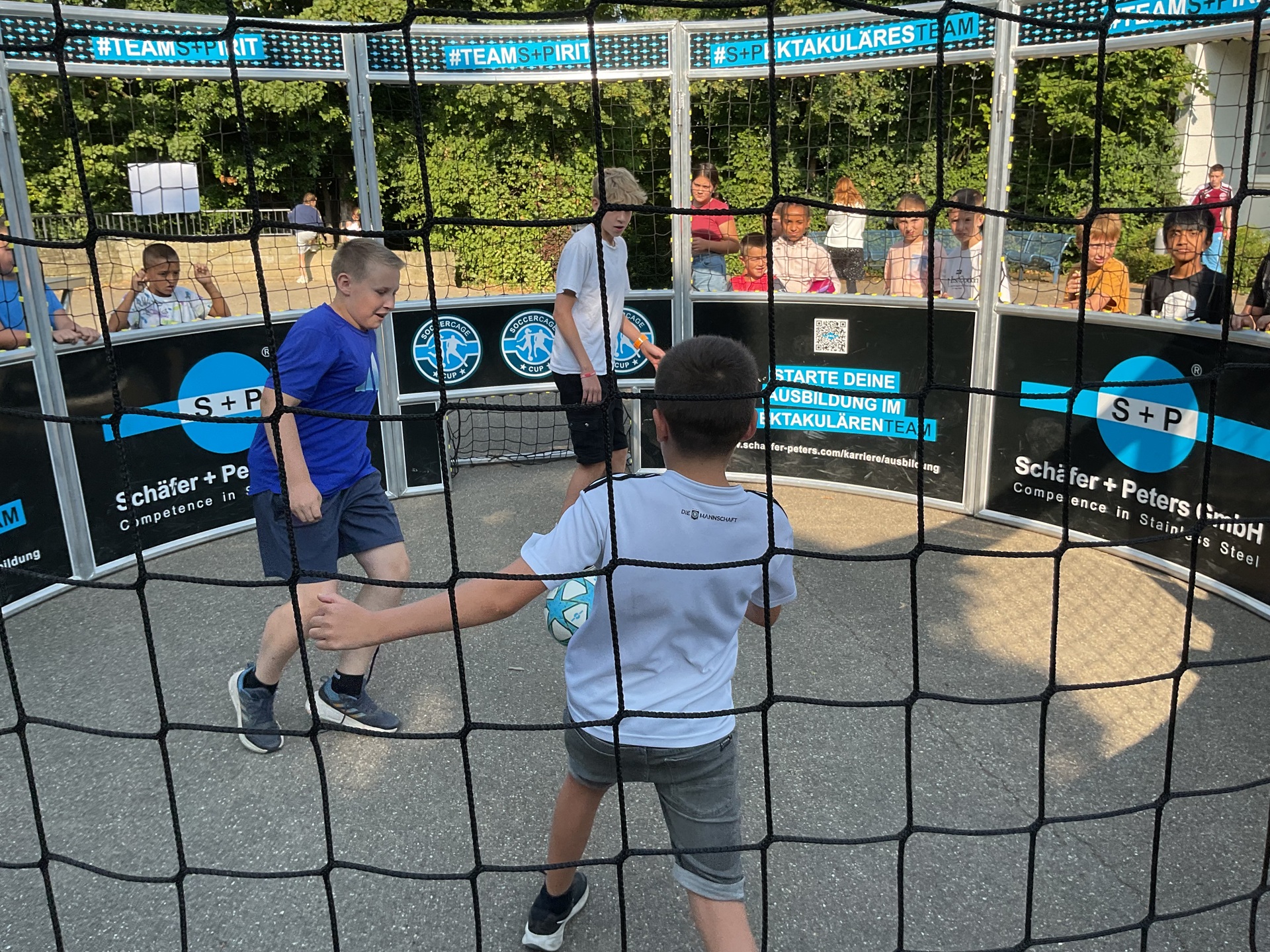 Außerdem stand den ganzen Tag über der Soccer-Cage der Firma Schäfer und Peters GmbH zur Verfügung – ein Highlight, das von vielen Schülerinnen und Schülern gern genutzt wurde, wenn gerade mal etwas Zeit während den Workshops war.